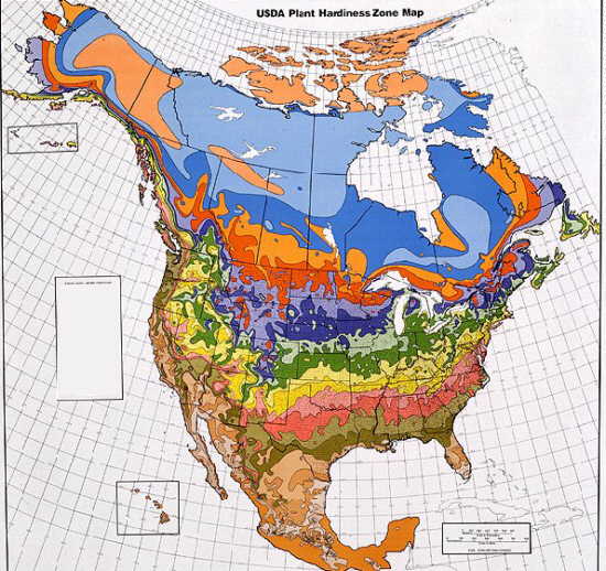 Horticultural information zone mape.Plants are hardy in these